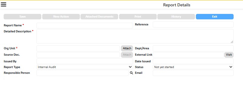 To start inputting actions into AuditDesk first select "Add New Report" at the top right of the screen: