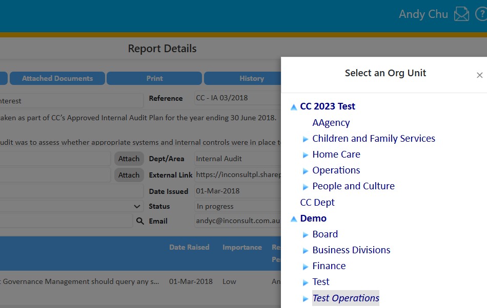 For the "Responsible Person"" field, you can either type a name in the text field or select the magnifying glass icon, to the right, to select from a list of existing users currently in auditdesk.